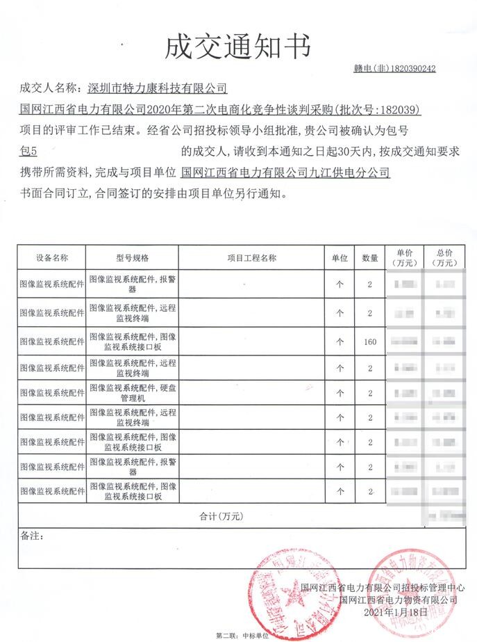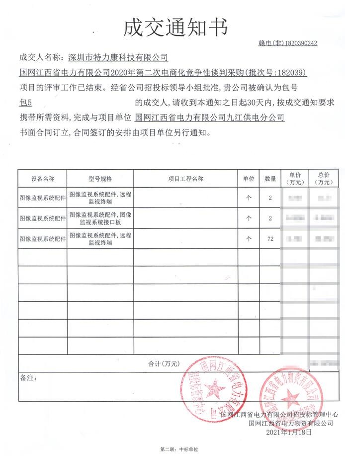 国网江西省电力有限公司2020年第二次电商化竞争性谈判采购(批次号:182039)项目的评审工作已结束。经省公司招投标领导小组批准,我司(伟德足球官网下载app)被确认为包号包5(1946伟德官方网站)的成交人,成交通知如下: